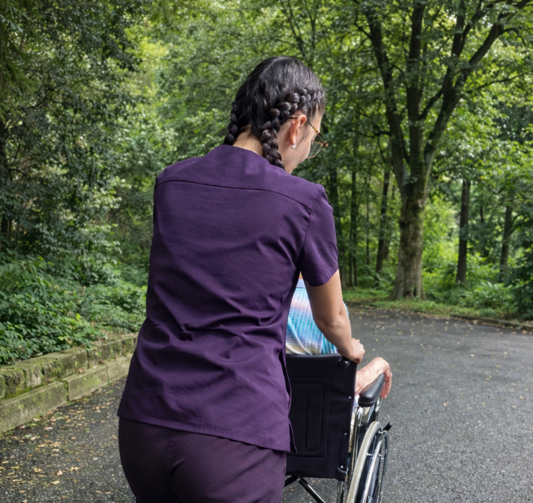 Asistencia en actividades diarias como baño, vestimenta, alimentación y movilización segura.
